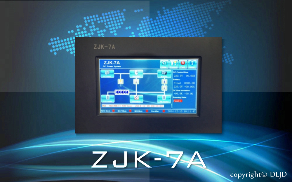 ZJK-7A触摸屏监控系统采用ARM7处理器,7英寸彩色触摸屏,显示直观,可控制不同公司的充电模块,绝缘支路数可以任意扩展,开关量检测单点256,双点128路,操作简单,具有“四遥”功能,规约CDT和MODBUS可选,可实现与后台机的通讯。